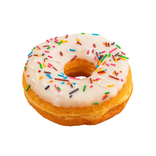 Brighten your day with our Vanilla Frosted Rainbow Donut from Delights. Soft, fluffy, and freshly baked to perfection, this donut is generously coated in a creamy, velvety vanilla frosting that delivers just the right touch of sweetness. Each one is finished with a cheerful dusting of colorful rainbow sprinkles, adding fun, flavor, and charm in every bite. Whether it’s your morning pick-me-up or an afternoon treat, this donut is a timeless favorite that makes every moment a little sweeter.